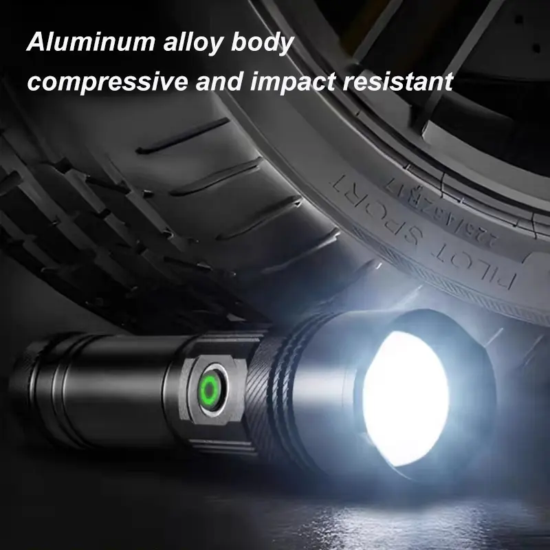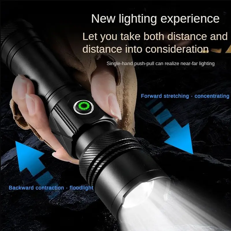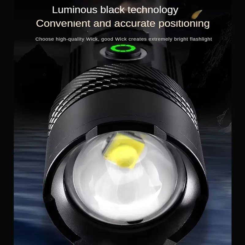 This flashlight uses advanced white laser beads to elevate your farsightedness to a new level. Flashlights can replace 26650 or 18650 batteries, and even 3A batteries in emergency situations to adapt to any situation. It provides five different lighting modes, ensuring unparalleled versatility and convenience.
