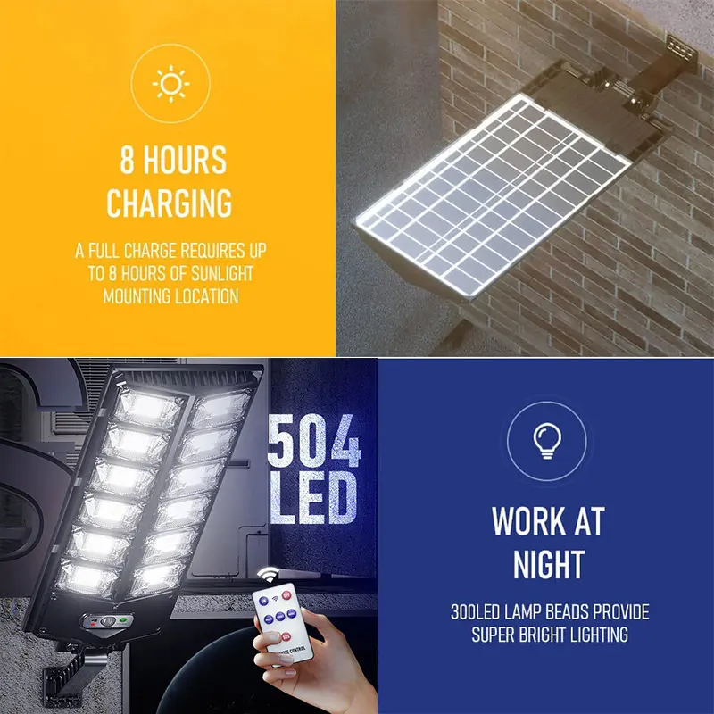 5-Size Solar Motion Lights (168-504 LEDs) – 50W to 100W – 2400-4500mAh – Weatherproof for Outdoor