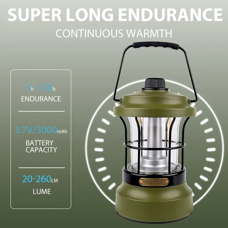 This camping light features a retro-inspired design that adds a touch of nostalgia to your outdoor adventures. Retro lantern aesthetics combine with modern technology, making it a stylish and functional accessory. It blends seamlessly into any camping environment or outdoor decor, enhancing the overall experience.