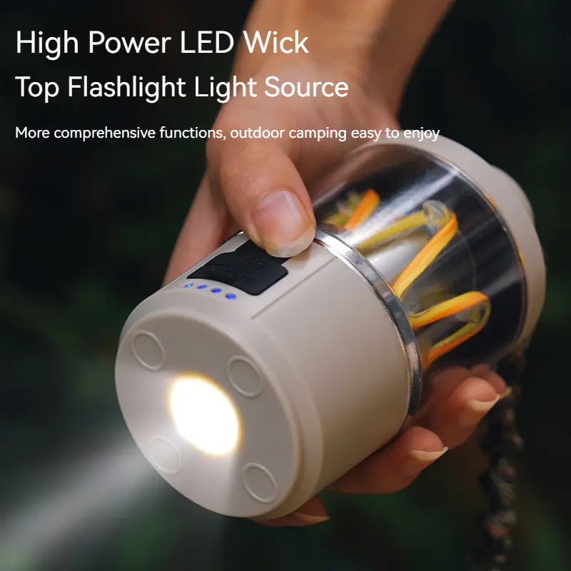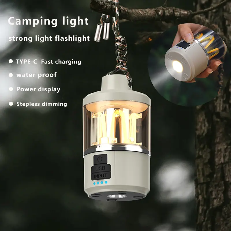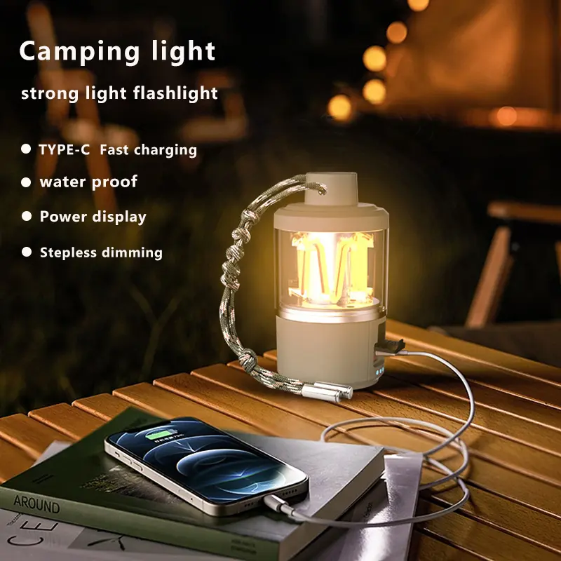 Explore the mountains, lakes and seas, light up the fireworks in the world, Multifunctional flashlightthe new generation of camping lamps, both beautiful and functional, depict the splendor of the night for you. Soft light atmosphere, infinite dimming, easily adaptable to various occasions, LED velvet warm light, gentle and non-dazzling, taking care of your eyes. Double-wound soft silk, tough and durable, three-color light source with a wide adjustable brightness range to meet different needs.  360-degree lighting and high-power flashlight light source on the top can provide you with sufficient lighting whether it is a family gathering or camping. The new generation of camping lamps leads the new trend of outdoor lighting, allowing you to enjoy warm nights while exploring the world.