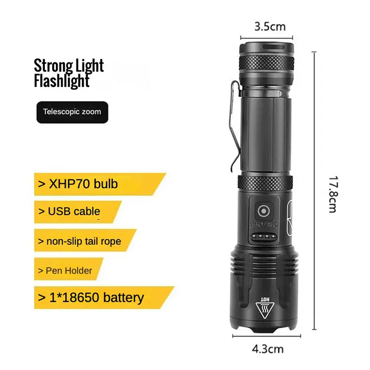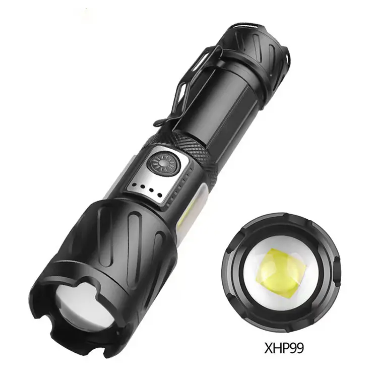 Dual Option Zoom Flashlights: XHP70 1500L or XHP50+COB 1750L, Aluminum Clip