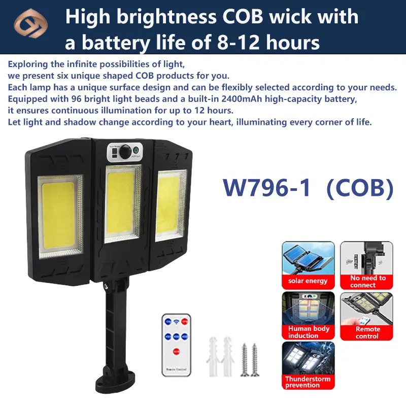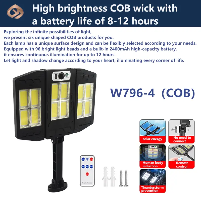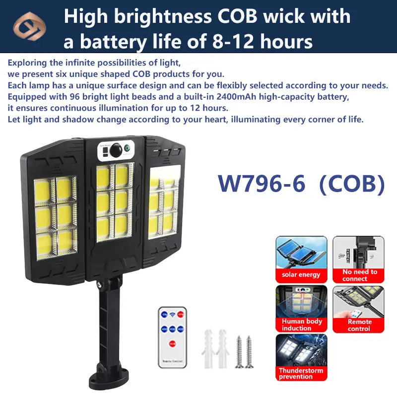 In addition, this solar light also has three different modes that can be switched. Users can choose the appropriate mode according to their needs to provide a more personalized lighting experience. The equipped remote control also realizes the remote switch function, which facilitates users to control the turning on and off of lamps from a distance, improving the convenience and comfort of use.