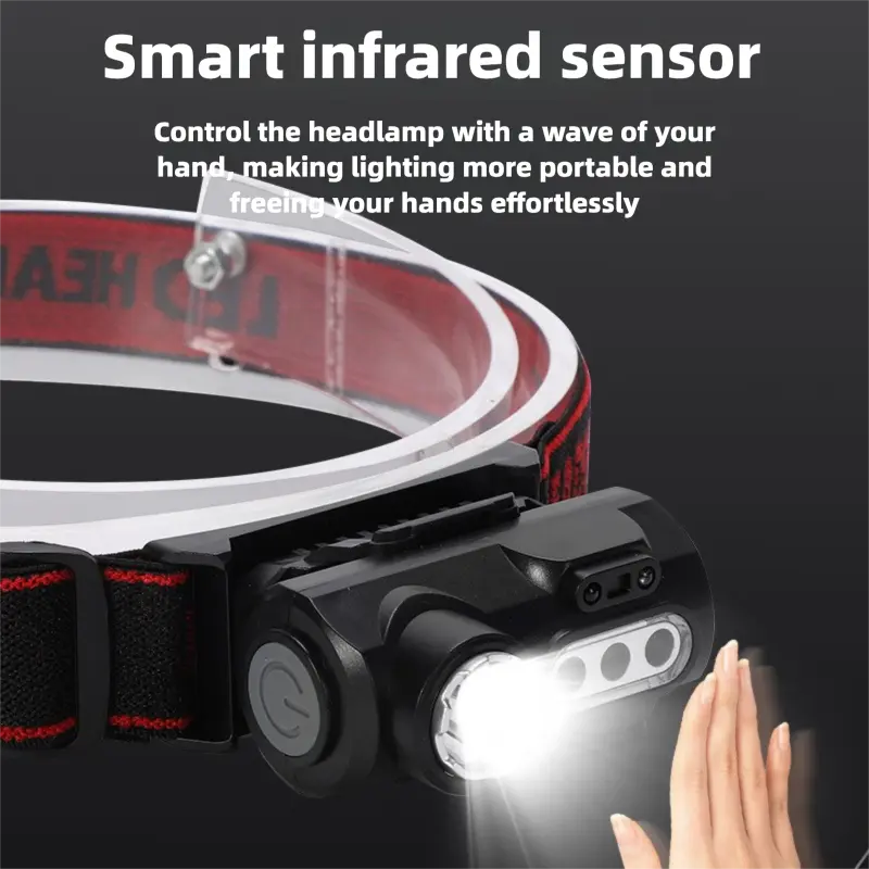 Magnetic Sensor Headlamp – 6 Modes (Spotlight/Floodlight/Red Light/Strobe)! Hands-free wave control for hunting & fishing – no fumbling in dark.