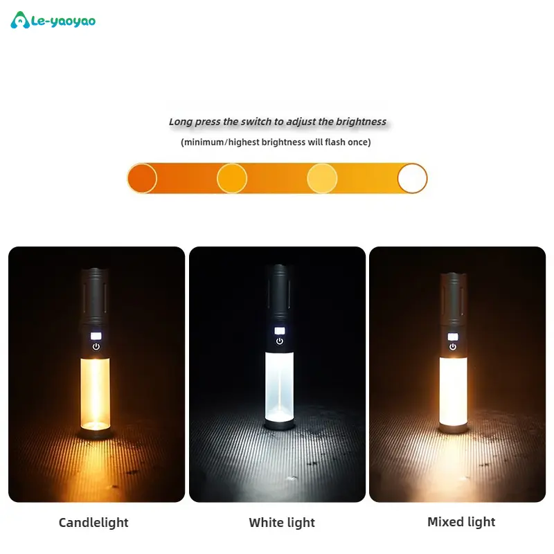 In addition to being used as a camping light, the KXK-606 can also be used as a flashlight. By double-clicking the switch, you can switch between strong light, weak light, and strobe modes to adapt to different usage scenarios. In addition, by stretching the head, you can adjust the high and low beam lighting range of the flashlight to obtain the best lighting effect.