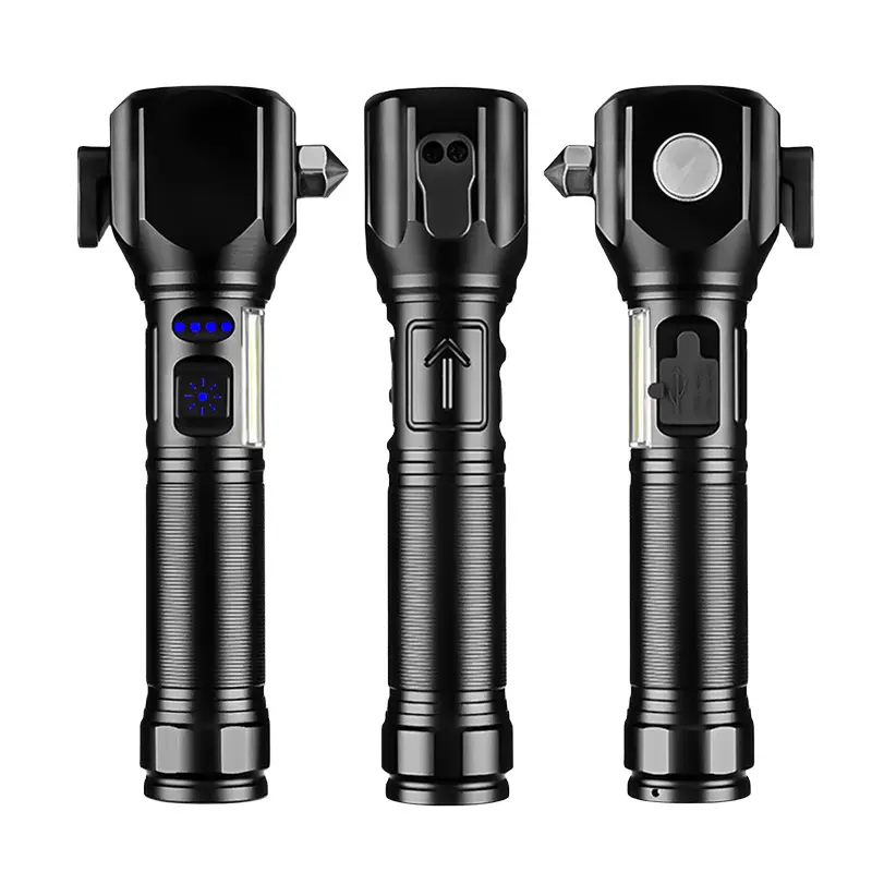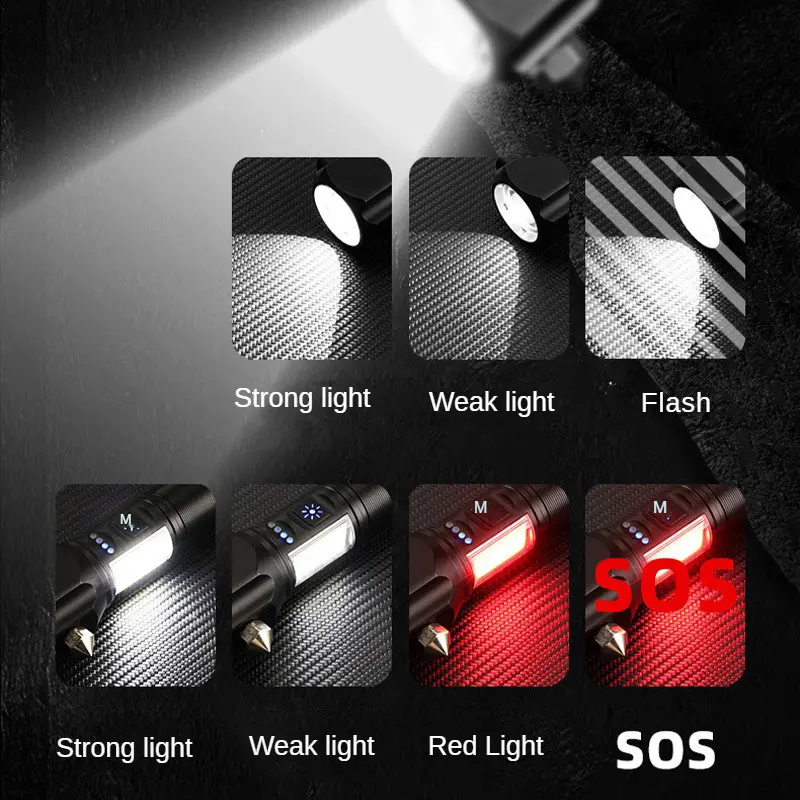 5. Function: Main light strong light – medium light – flashing, COB side lights: strong weak – red light – red and white warning light