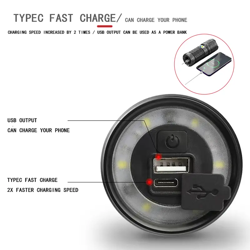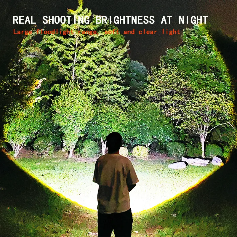 3.COB Soft Light – The tail of the flashlight is designed with COB soft light lamp, the irradiation area can reach 20 square meters, the soft light design brightness is moderate and not dazzling, suitable for home power failure, circuit maintenance and other situations; It can even be used to fill in light for photography.