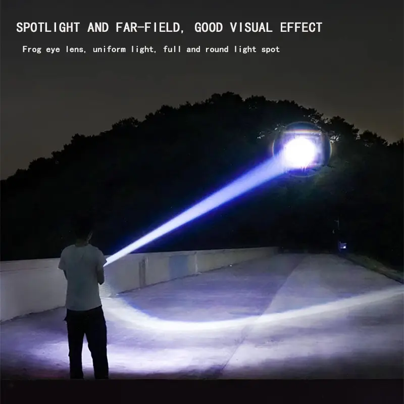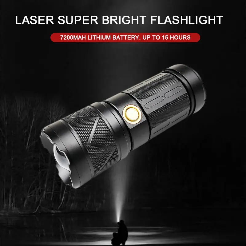 1.High Lumens Flashlights – Rechargeable LED flashlight, using durable white laser LED chips, Service life can reach 50,000 hours. Maximum power 30W. In the spotlight mode, the irradiation distance can reach 1500 meters. Intense spotlight for long range observation.