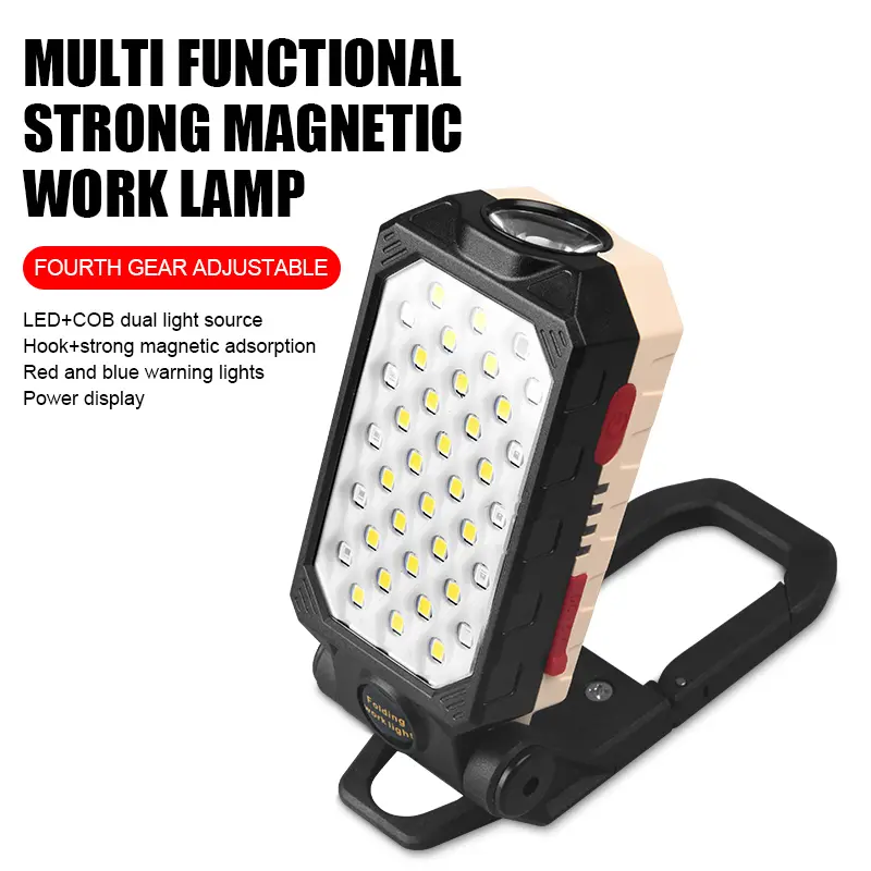 Equipped with top light COB + 28 pcs 2835 main LEDs + 10 pcs 2835 red/blue beads, this folding worklight delivers powerful illumination for jobsites, camping, or emergency use. Features dustproof, fall-proof, wear-resistant, and waterproof performance—built to handle tough environments. Its compact, portable design (with a sturdy handle) makes it easy to carry. Perfect for mechanics, outdoor enthusiasts, or anyone needing reliable, multi-functional lighting.