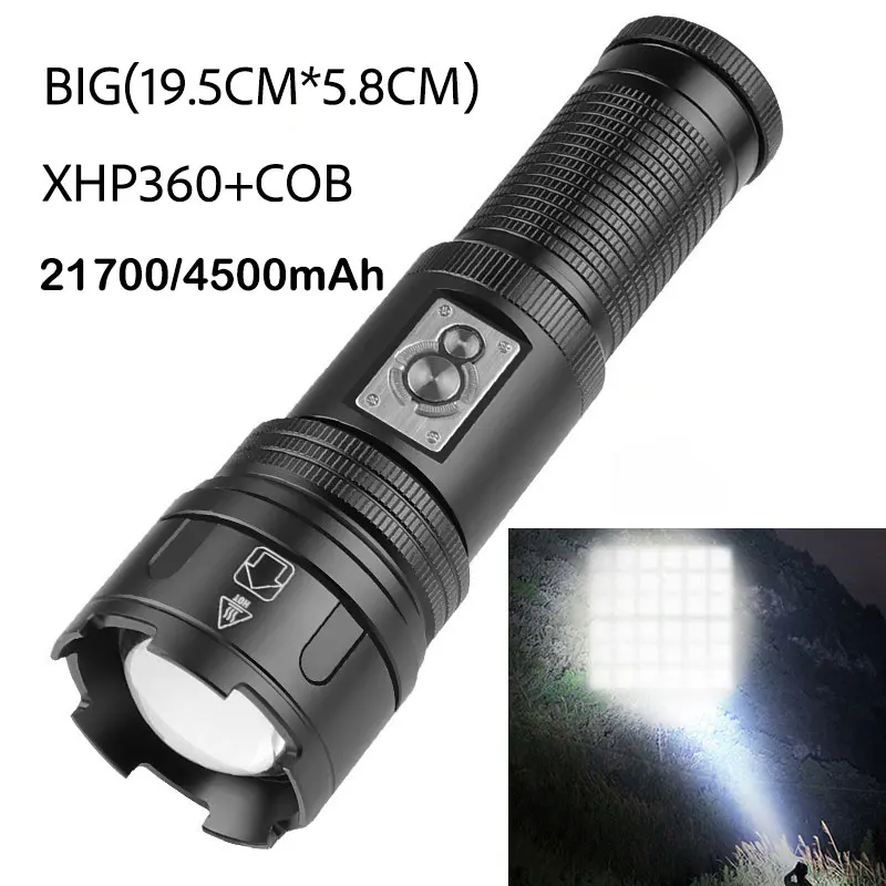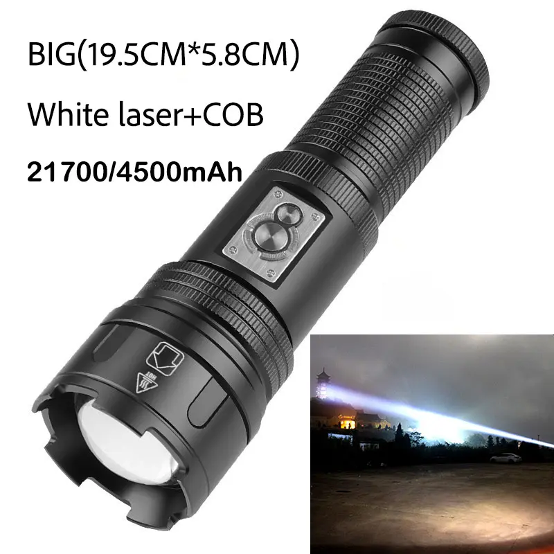Professional White Laser Flashlight 800LM + COB 250LM – Rechargeable – Zoomable Focus – Multi-Function Camp Light