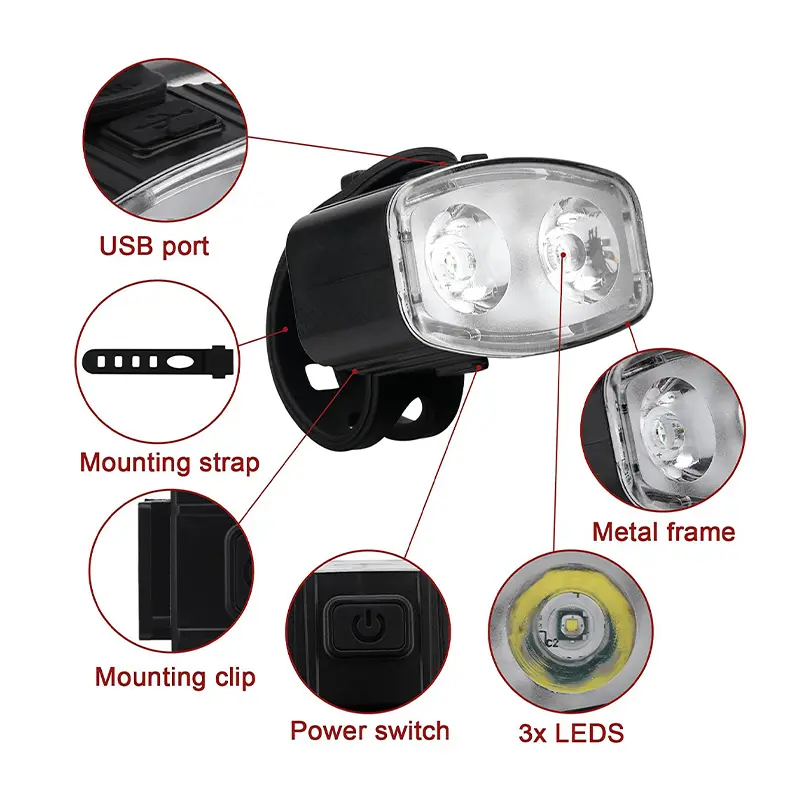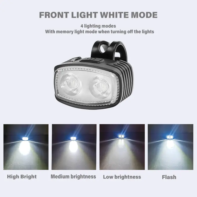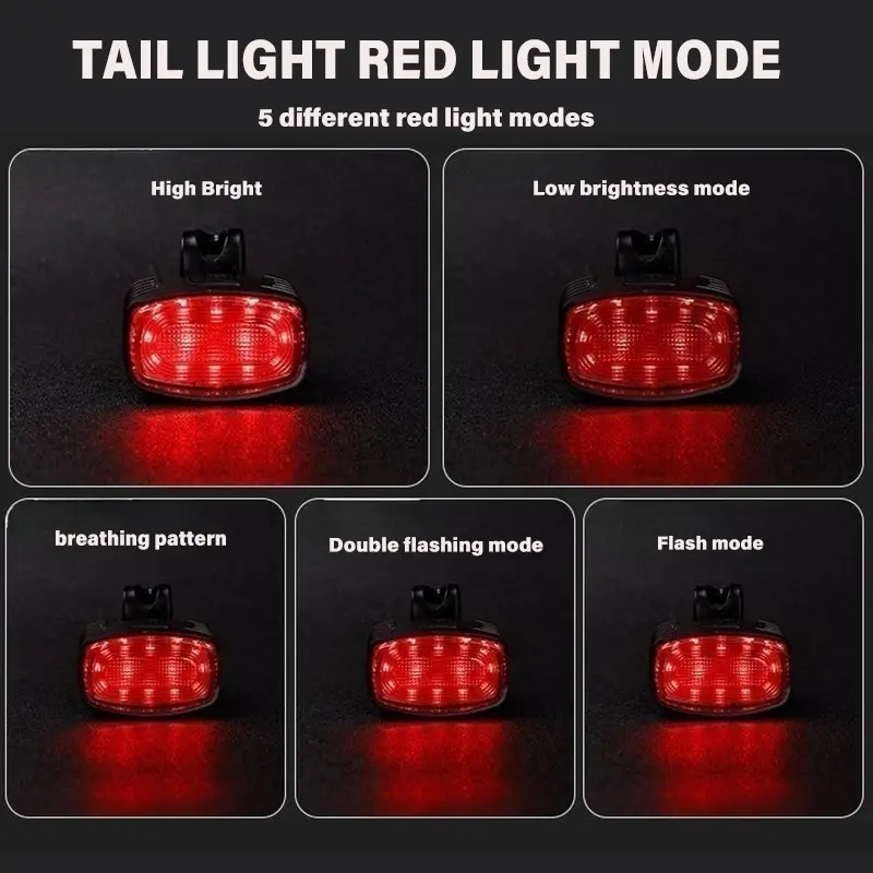 The bicycle headlights and taillights are powered by a large capacity polymer lithium battery with a capacity of 300mAh. The battery ensures long-lasting performance, allowing you to ride longer without worrying about running out of battery. Our bicycle light pack is rechargeable and environmentally friendly, making it a sustainable choice for enthusiastic bicycle enthusiasts.