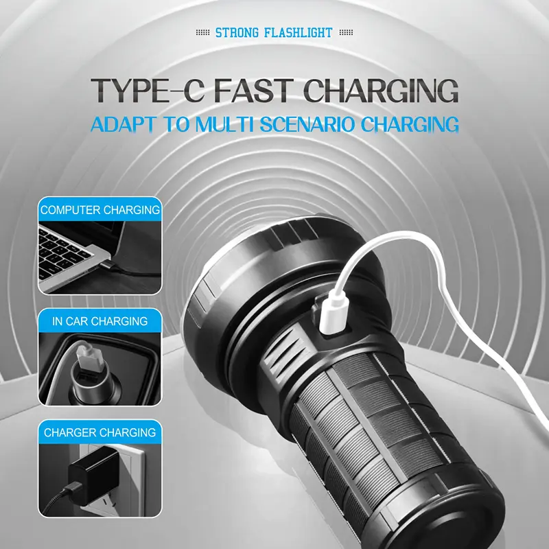 The aluminum flashlight series provides a TYPE-C charging port through button control, making charging and use more convenient.