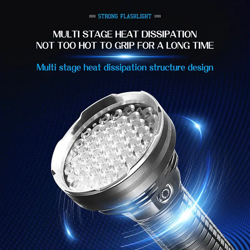 Equipped with 31 to 55 LED lamp beads, the luminous flux of the aluminum flashlight series ranges from about 700 lumens to about 7500 lumens, which can provide powerful lighting effects.