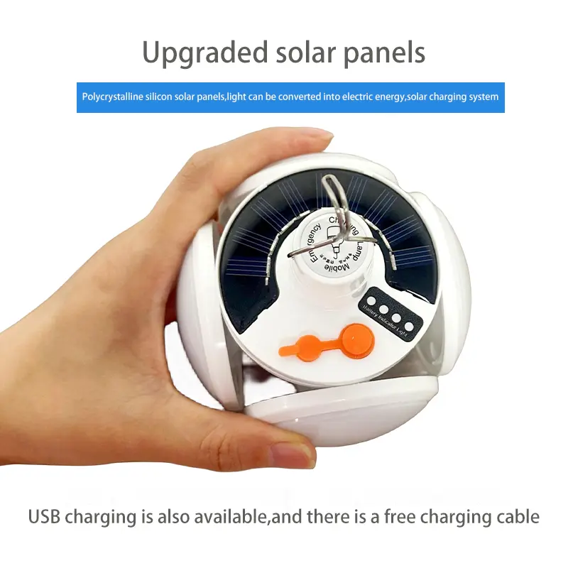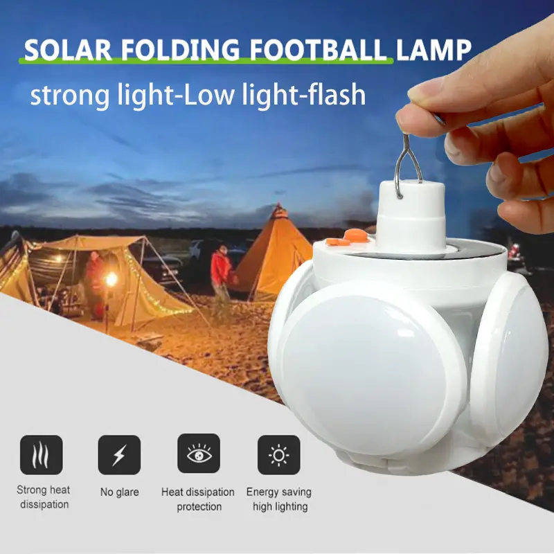 Introducing innovative and versatile USB rechargeable waterproof foldable football LED camping solar lights, it is the perfect companion for all outdoor emergencies. This football folding lamp is carefully designed and made of high-quality ABS+PP material, ensuring durability and long lifespan.