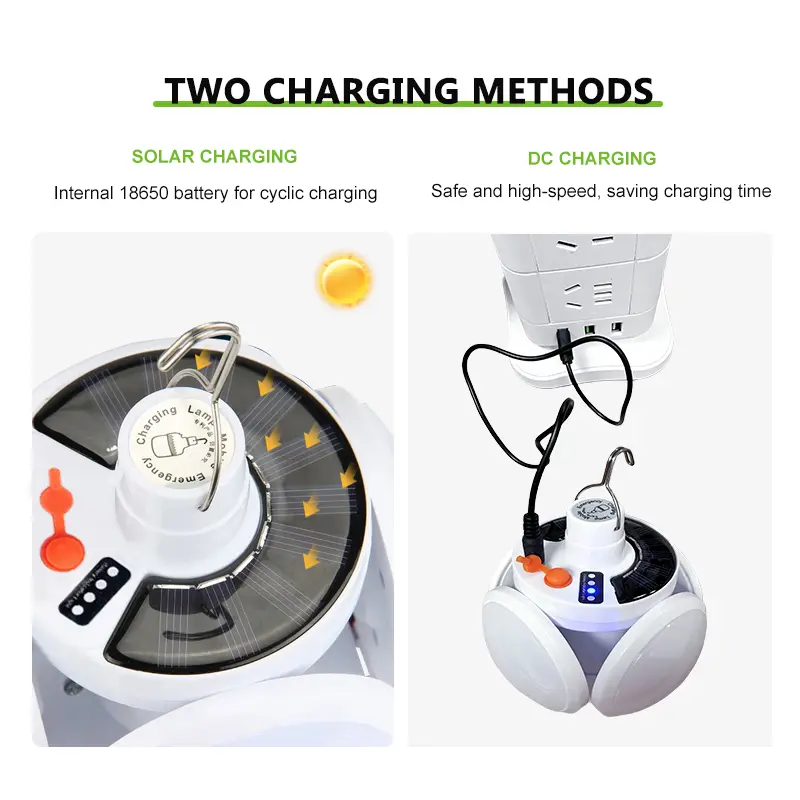 LED camping solar lights offer three different operating modes – strong light, weak light, and strobe – to adjust brightness according to needs and preferences.