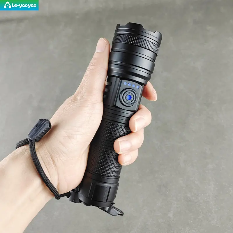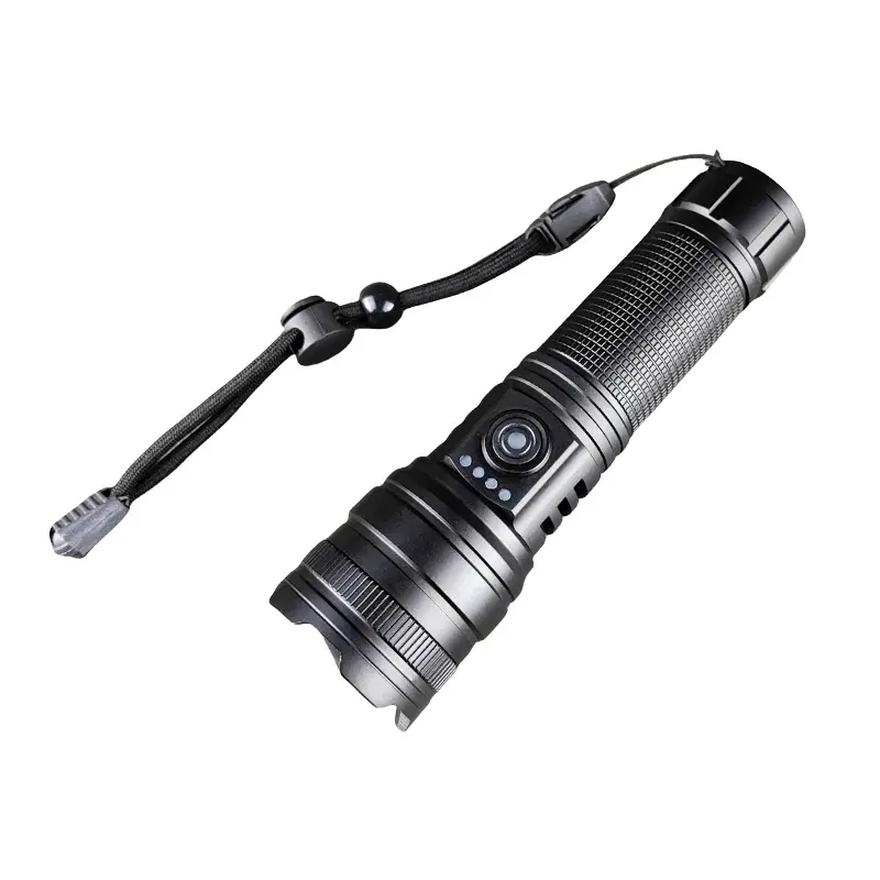 This flashlight is made of black aluminum alloy, which is not only durable but also has good corrosion resistance. Its compact design and light weight make it an ideal choice for hiking, camping or daily use.
