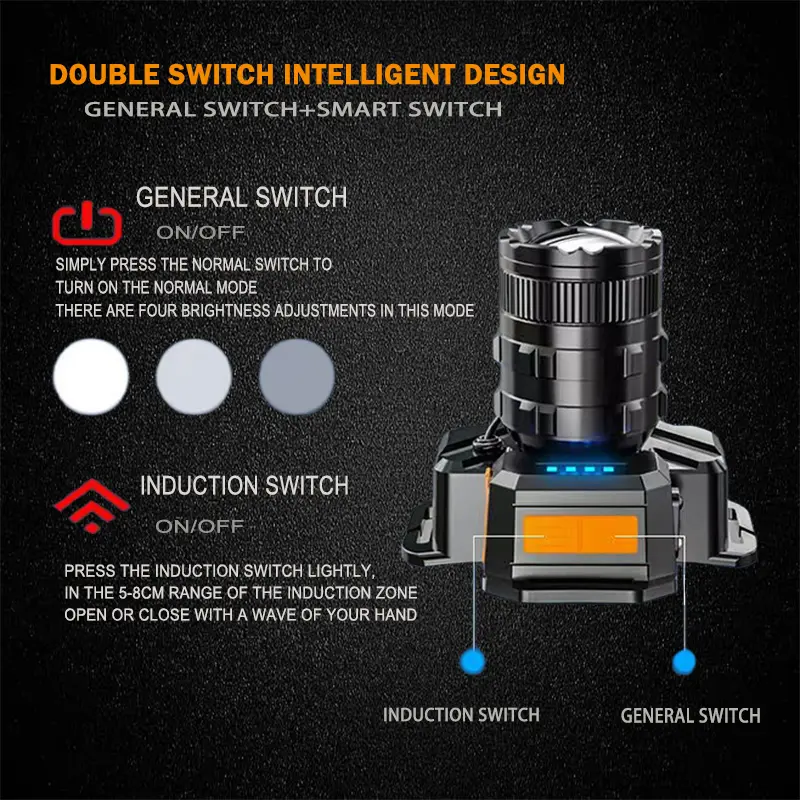 Innovative technology, illuminating the future! Explore our brand new aluminum alloy headlights, opening a bright door for your vision. You can choose between white laser and P50 lamp beads, each of which can provide unimaginable lighting effects. The large capacity battery ensures long-term use and has a battery life of approximately 8 hours, eliminating the need for frequent charging. What’s even more surprising is that this headlight is equipped with zoom and sensing functions, allowing you to adjust the lighting range freely, automatically sensing ambient light, and intelligently adjusting brightness, providing you with a comfortable and efficient lighting experience. This headlight is your ideal companion for outdoor activities, night work, or exploration. Embrace the light, choose our aluminum alloy headlights, and bid farewell to the darkness inife from now on.