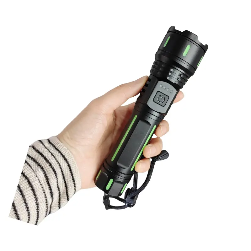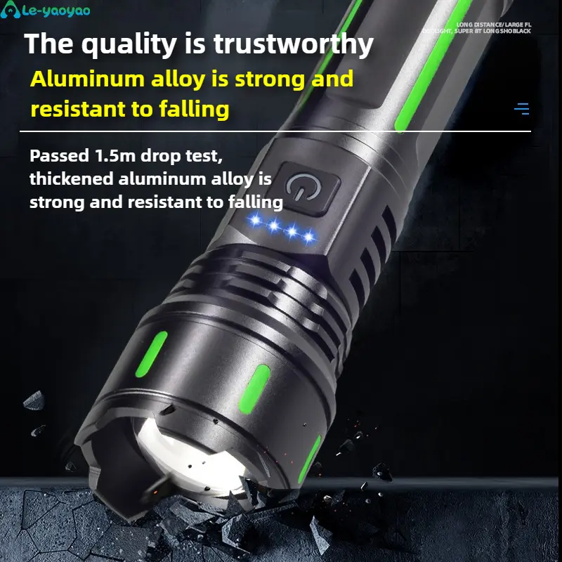 The flashlight is designed with 5 brightness modes, and users can choose the appropriate brightness according to actual needs. These modes include 100% brightness, 70% brightness, 50% brightness, and two special modes: flashing and SOS signal. This design allows the flashlight to play its role in different situations, such as sending a distress signal in emergency situations.