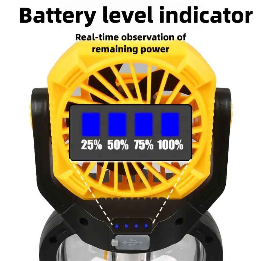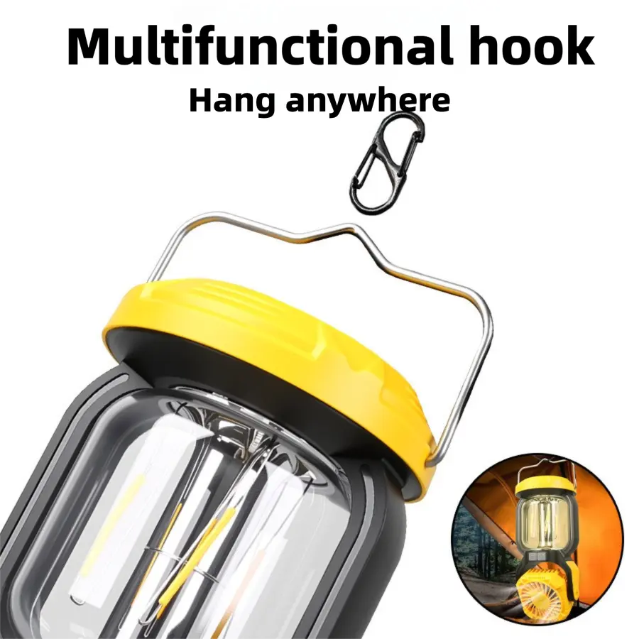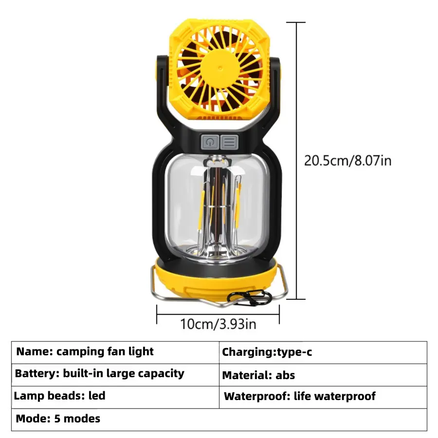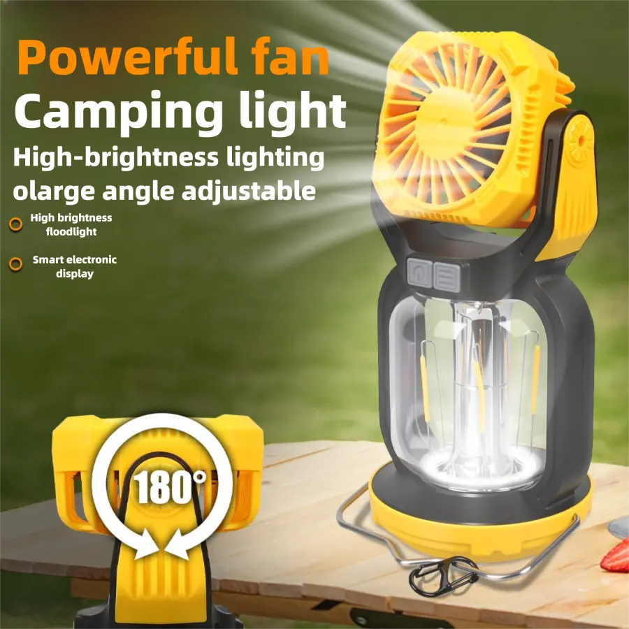 WT668 2-in-1 Rechargeable LED Camping Light & Fan | Warm/White Light + Strong Wind Modes