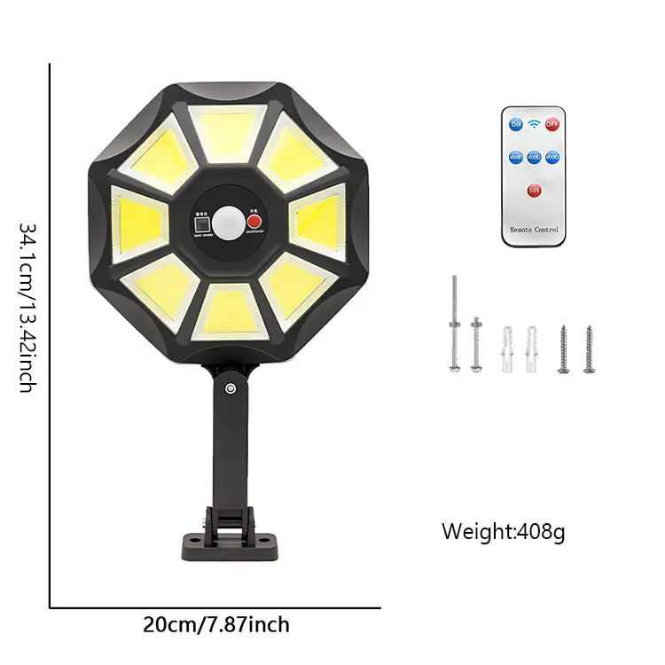 The solar induction lamp uses high-quality ABS+PC materials to ensure its durability and drop resistance. Built-in high-efficiency 5.5V/1.8W solar panels provide stable power support for the lamp through solar charging. The product uses two 2400mAh 18650 batteries, which can effectively ensure long-term use and charging stability. The lamp beads use 168 high-brightness LEDs to provide strong and clear light.